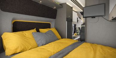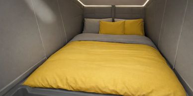 Fold-down Rear Bed: High-level fold-down design allows for ample storage underneath when the bed is not in use